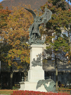 Unser erster Halt war auf dem großen Busparkplatz, von wo aus wir einige Schritte in Richtung Matthiaskirche gegangen sind. Zuerst aber hat uns unser Rundgang durch eine kleine Gasse mit malerischen Häusern zum Denkmal des Freiheitskämpfers Szabad Hazaert geführt. Hier haben wir nicht nur die Statue fotografiert und dem Vortrag gelauscht, dort hatten wir auch unsere erste Begegnung mit den Budapester Nebelkrähen.